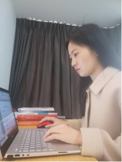 侯珂珂老师正在家中准备线上教育教学工作