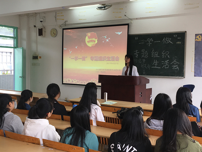 2017年4月27日下午17时,2015级信息资源管理专业团支部在教学楼B栋503开展“一学一做”专题组织生活会,我班团支书林淑珍是此次团会的主讲人。