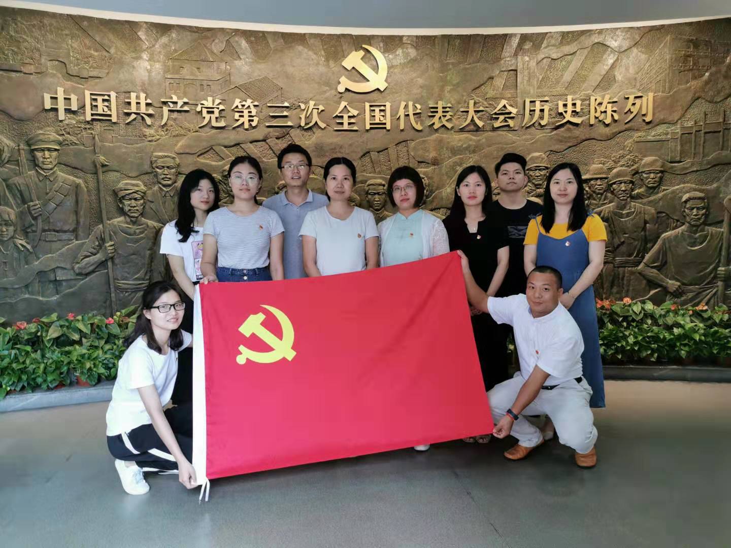 为深入开展“不忘初心、牢记使命”主题教育,suncitygroup太阳集团师生联合党支部组织党员于2019年10月12日下午,参观了党的三大会址。在会址广场,党支部书记刘黎同志带领党员在鲜艳的党旗下重温入党誓词,坚定为人民服务和建设新时代中国特色社会主义的决心。