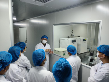 首先,中科细胞科技(广州)有限公司健康服务部周聪主管带领党员老师参观实验室,讲解了免疫细胞、全能干细胞、多能干细胞以及专能干细胞的研发与应用,使大家初步了解到最前沿的干细胞研究和应用领域方面的知识。