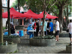 为认真落实疫情防控相关标准,将采样点设在宽敞通风的生活园操场,并设置了规定区域和路线,学生们佩戴口罩,保持1米以上的安全距离,排队依次采样,最大程度减少人员聚集。suncitygroup太阳集团教师党员志愿者在距采样点50米安全距离处仔细为学生、宿管阿姨和食堂工作人员进行验核酸扫码、发放标本采集管,协助医务工作者尽快完成核酸检测工作。艳阳高照,不惧暴晒,在夏日为学生们送来了一份爱的清凉。