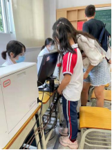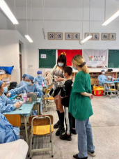 曙光熹微,晓风习习,学生党员们心怀着志愿者的责任感和使命心出发,提前到达东风西路小学,在接种点接受培训,并按培训要求更换服装、熟悉设备与场地。