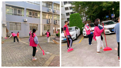 志愿者们分工合作、积极投入,发扬不怕苦不怕脏的精神。分配好清洁任务后便拿上工具开始对广州校区教学楼B栋、C栋周边区域进行清理,在教学楼的各个区域进行全面认真地清洁打扫,不留死角,并按照垃圾分类的原则,将落叶集中处理。