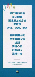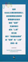 教师党员夏阳:2022年4月25日,习近平总书记在中国人民大学考察的讲话提到教师应争做“经师”和“人师”的统一者,这无疑为我们新时代教师指明了方向。所谓“善之本在教,教之本在师。”为师不仅要“传道、授业、解惑”,还要“立德、立言、立名”。“学高为师,身正为范。”作为青年教师,牢记党的教诲,立志民族复兴,不负韶华,不负时代,不负人民,工作中恪尽职守,以积极向上的姿态引导青年在实现中华民族伟大复兴的新征程上自觉传承红色基因,在青春的赛道上奋力奔跑,争取跑出我们这一代青年人的最好成绩。