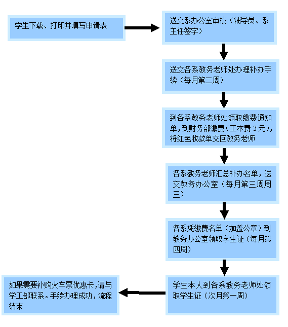 (7)学生本人凭有效证件到系办公室领取学生证(次月第一周),流程结束。