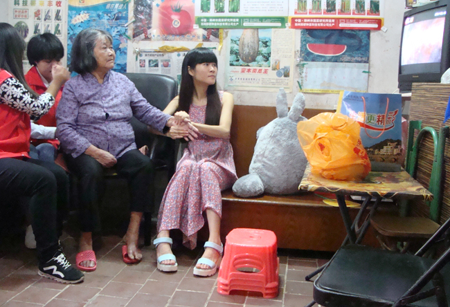 志愿者们陪伴陈姨聊聊家常