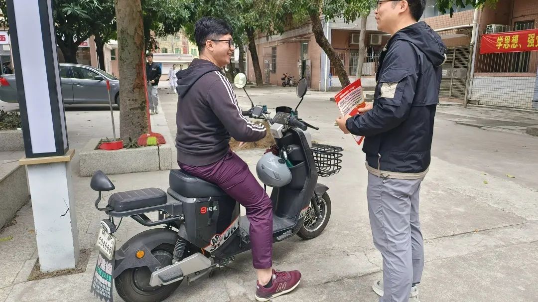 志愿者与宿管交流电动车使用安全情况,保证安全措施落实到位。通过交流,志愿者了解到生活园电动车使用的情况,有针对性地进行安全宣传,宿管则可以充分发挥自身优势,加强对学生使用电动车情况的监管,确保宿舍区域内的安全,从而有效地加强安全规范,减少安全隐患。双方共同合作,有效地加强了电动车安全的宣传力度。