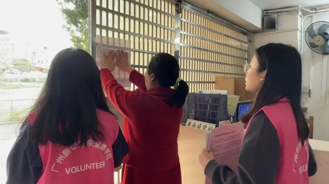 (图为志愿者于宿舍楼张贴宣传单)
