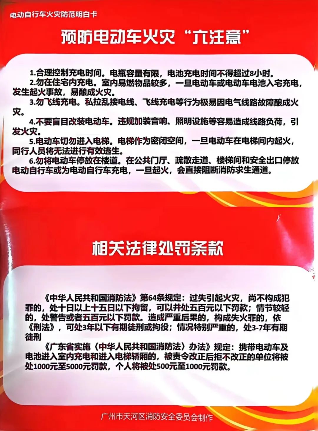 (图为电动自行车火灾防范明白卡)