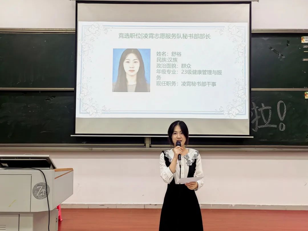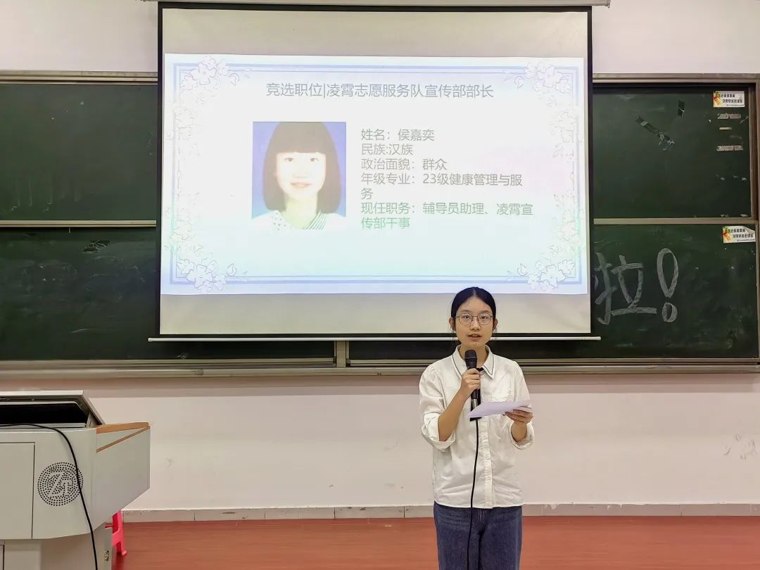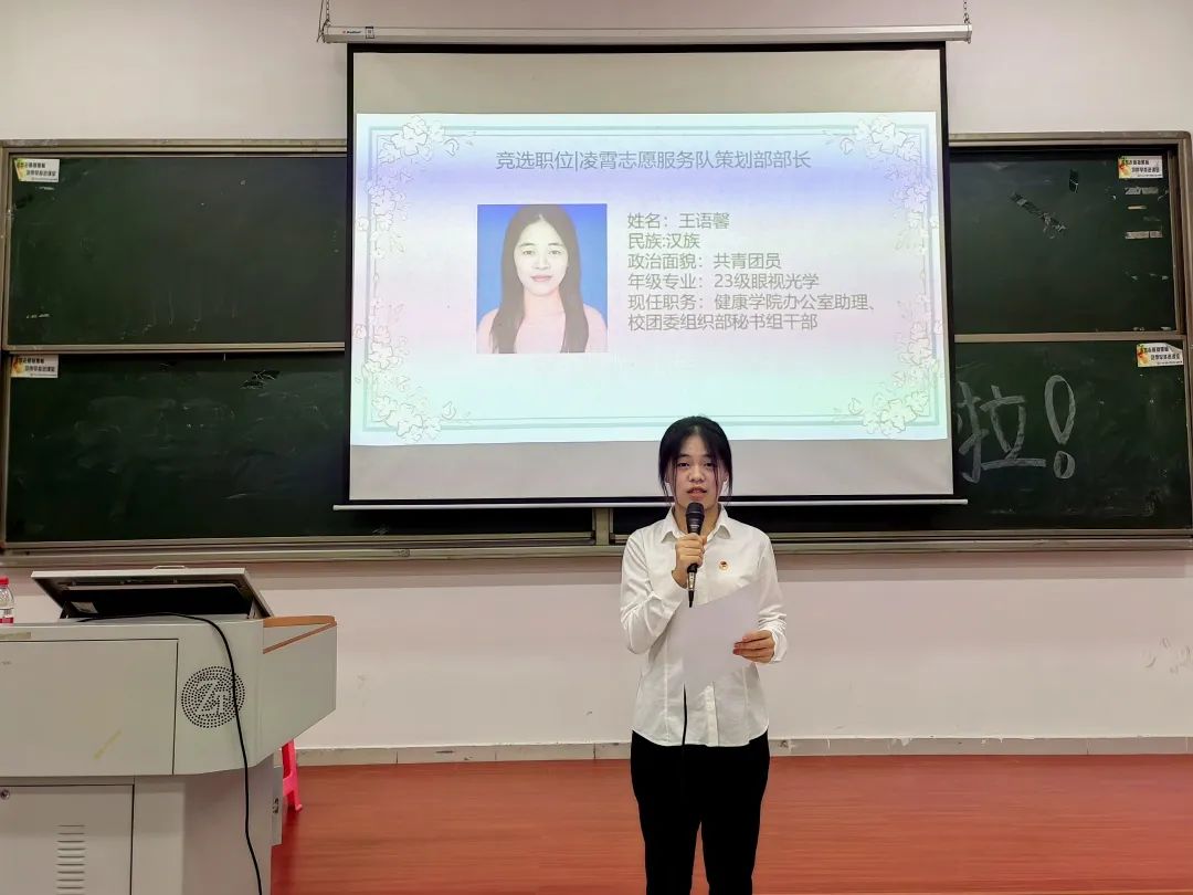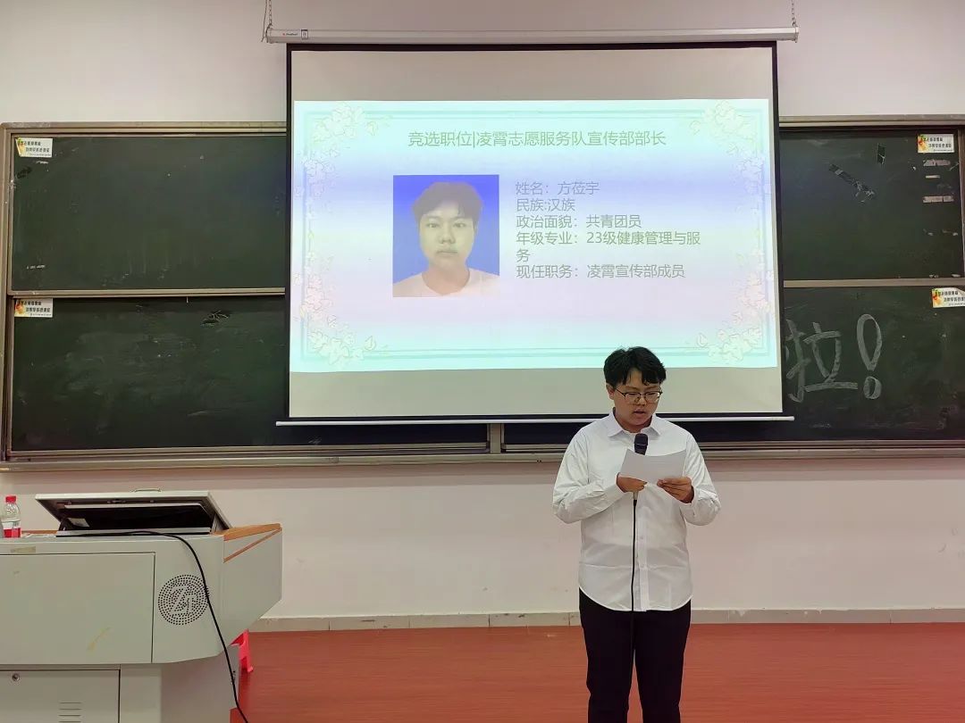 出席本次大会的有凌霄志愿服务队的指导老师夏阳老师、队长陈润薇、22级管理层、23级管理层候选人及主持人23级眼视光李扬同学。