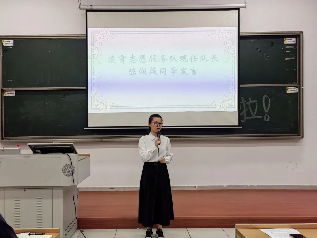 指导老师夏阳为22级凌霄志愿服务队颁发聘书: