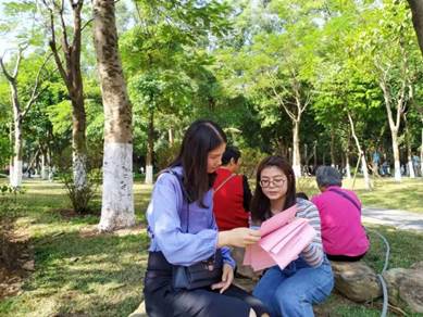 活动现场,通过派发放防癌知识宣传单,咨询解答等形式向社区居民宣讲癌症类型、致癌因素、如何早期发现癌症等相关知识,宣讲合理的生活方式与健康食疗有助于预防癌症的发生。同学们现场还和居民深入交谈,了解百姓的日常健康状况和健康需求,有针对性地为下一次的健康宣教的活动资料做准备。此次活动不仅为周边居民带来一次生动有益的健康宣教,为他们答疑解惑,帮助他们提升健康素养,,指导生活中的健康行为,而且同学们也在活动过程中将平时书本上的知识运用到实践中,锻炼人际交往与沟通的能力。