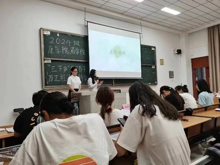 在初步了解“三下乡”后,2022级健康服务与管理专业的陈润薇向同学们分享了自己参加“三下乡”的经验。通过这一经验分享,同学们对“三下乡”社会实践活动有了更立体的了解。