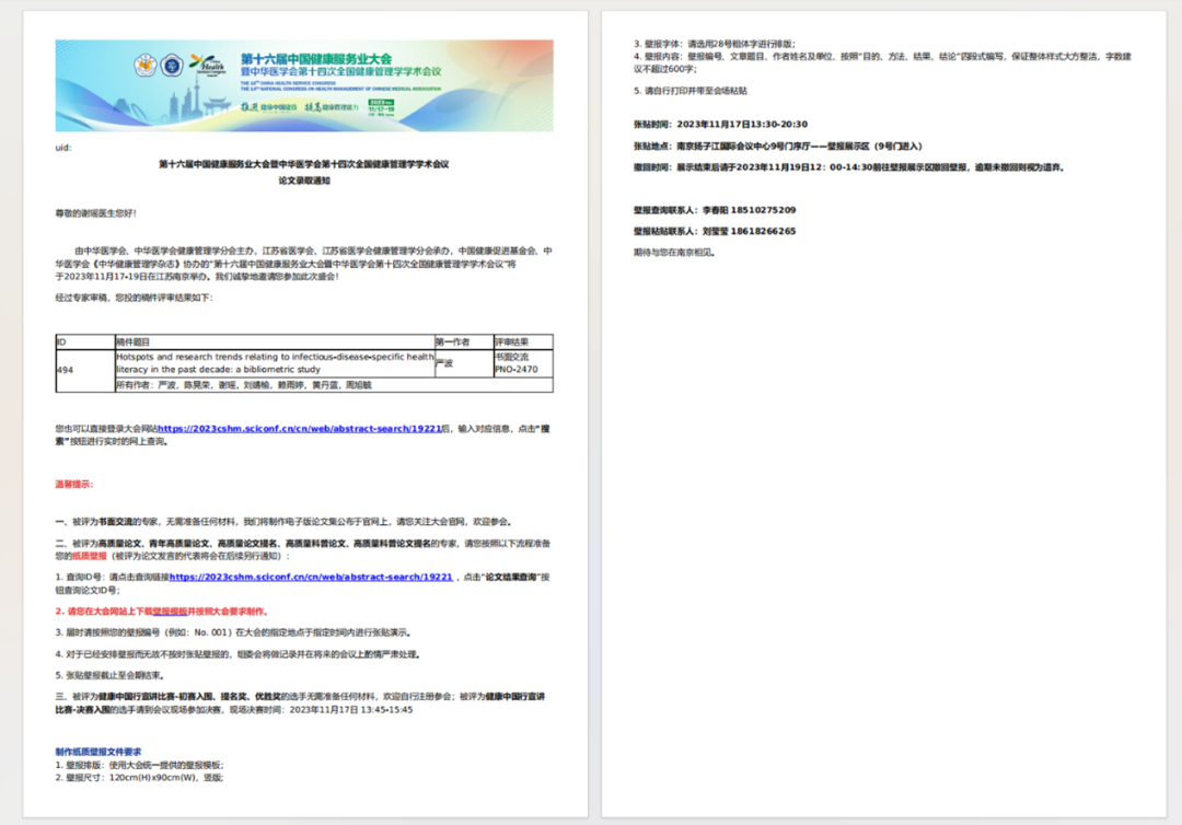 (图二:第十六届中国健康服务业大会暨中华医学会第十四次全国健康管理学学术会议论文第四作者录用通知)